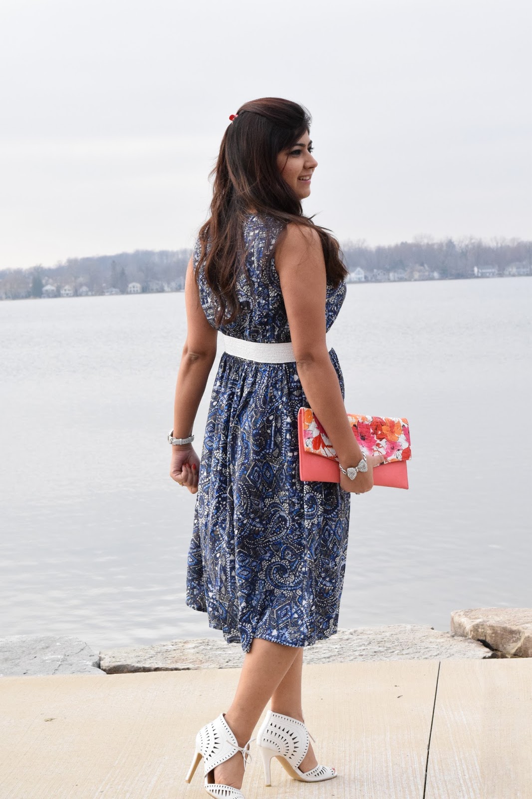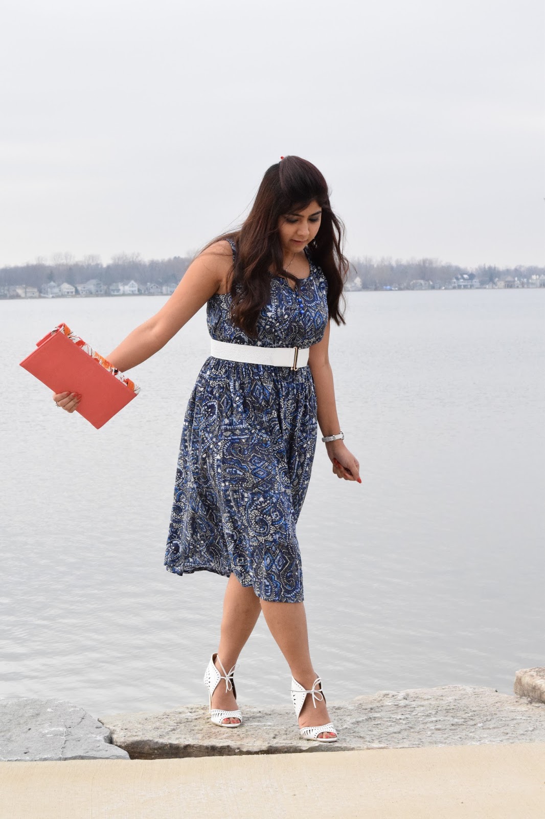 Today’s dress the most comfortable and versatile of all time. Versatile because of the fact that it can be paired with multitude of colors (Bags and shoes) and accessories. Its the kind you cannot classify – you can wear it to the office equally as you can for running errands. Paired it with a white belt and shoes. Also I softly curled my hairs to give a beachy, wavy look… Topped off with some pretty accessories and that’s it…