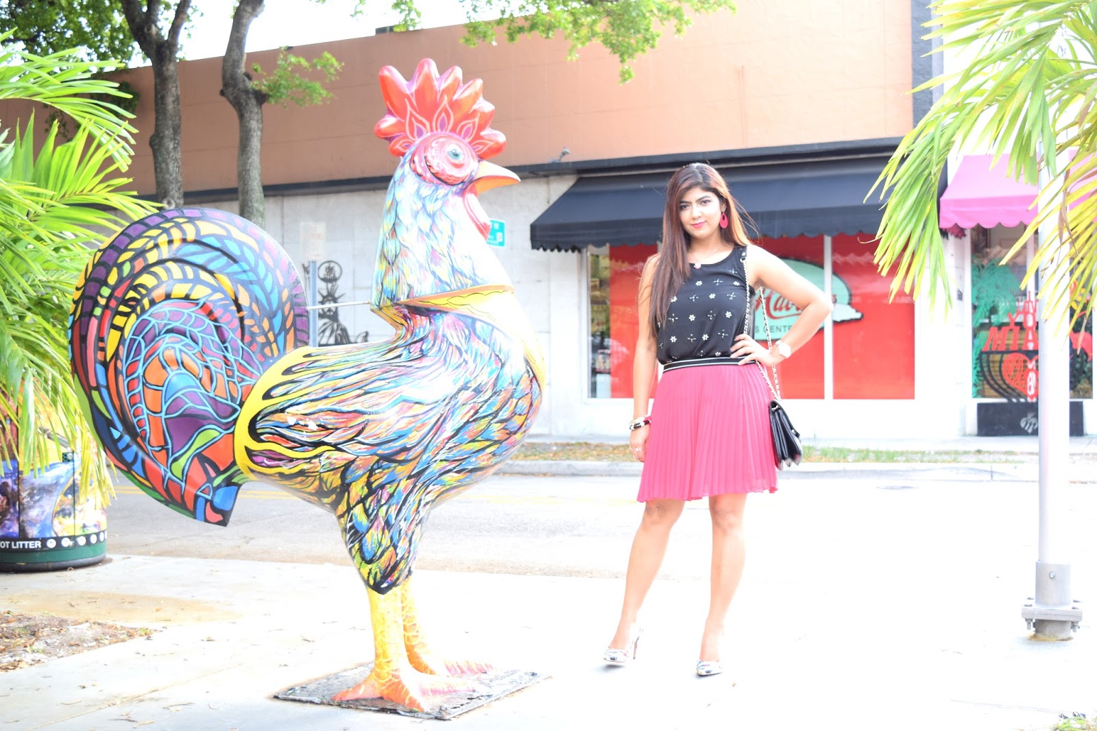 Hope you having as amazing weekend as I am or maybe still better!!! Today I wanted to share a super cuteeee girly outfit that I wore for the weekend getaway. It was a short and sweet trip just to say “Hola” to a slice of cuban culture relocated to Miami. It had a glorified backdrop of art with some of its amazing wall murals blended with a pulsating cuban culture. There you could find elderly men playing the game of “Dominoes” while they discussed their daily affairs and laughed and giggled and danced along the tune of some folk music. It had an omnipresent aroma of the Cuban coffee mixed with some fresh homemade ice-creams that literally stole my heart away. You need to stop and stare and admire the entire blend of this mini Cuba!!!